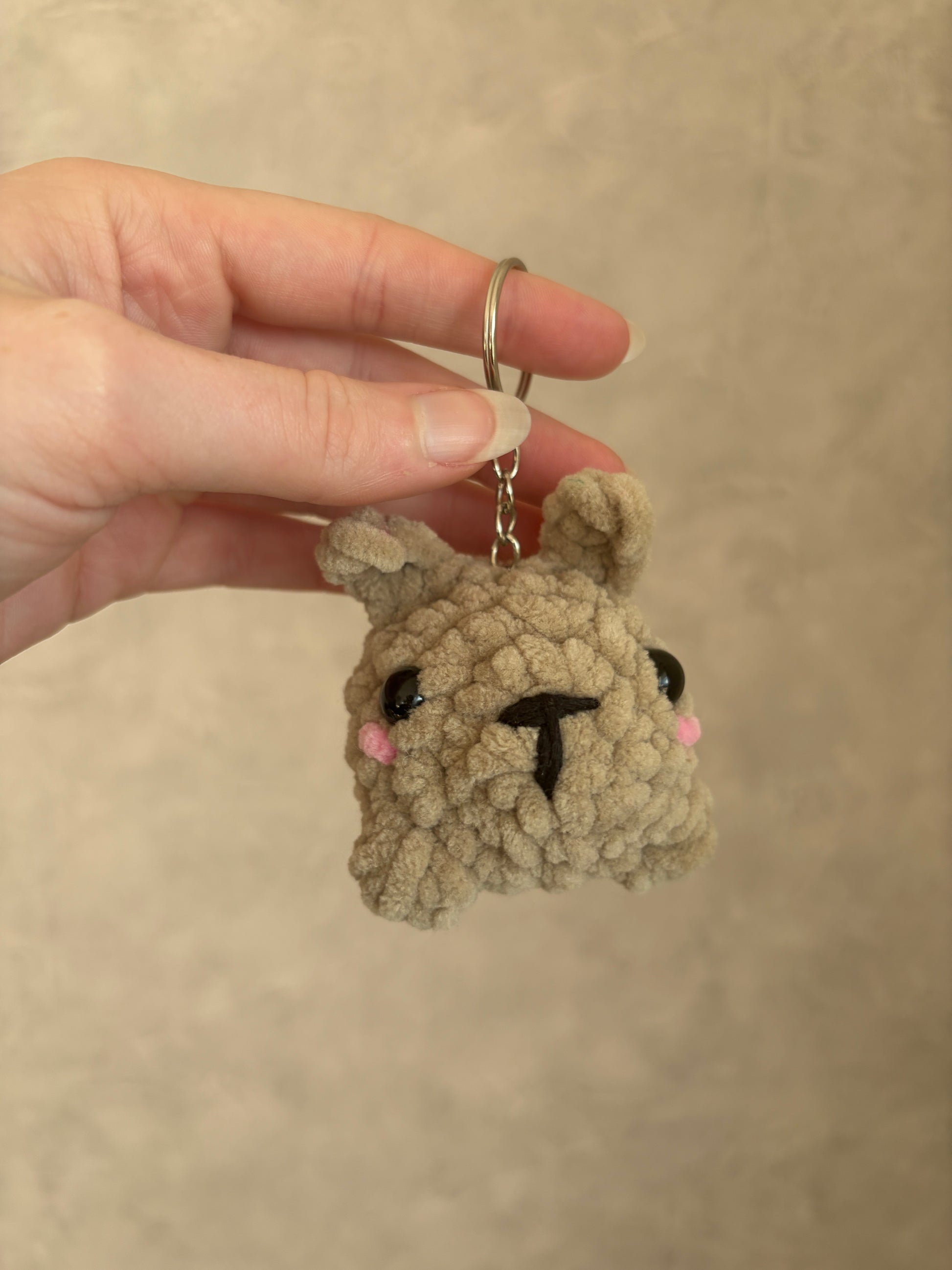 Accrochez ce lapin porte-clé à vos clés : le petit compagnon aux longues oreilles, unique et tout doux.